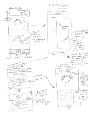 Sketched lo-fi wireframes of the features and flow of the app using paper & pencil